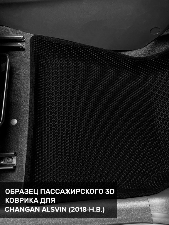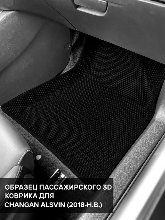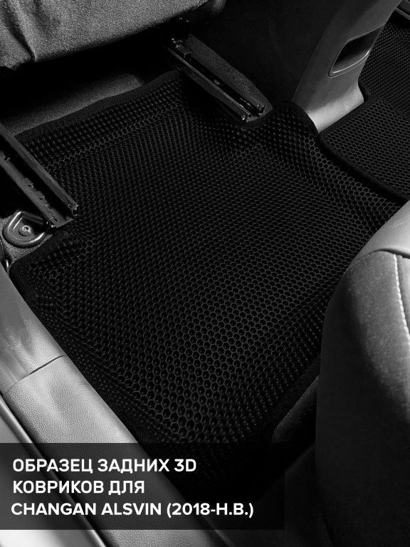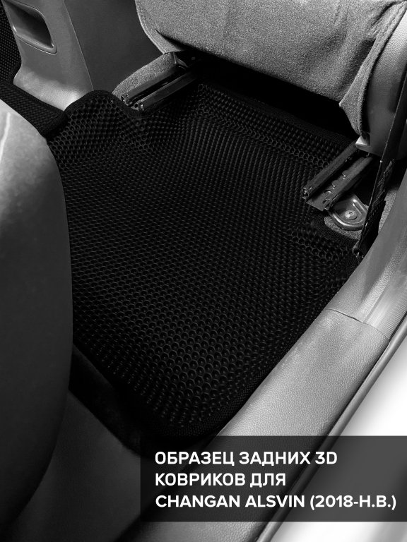 Автомобильные 3д коврики для Changan Alsvin (2018-н.в) в салон авто и багажник сделаны из инновационного полимерного материала EVA, изысканная структура в виде ячеек не дает воде, пыли и снегу разлетаться по салону машины и багажнику. 3д коврики зафиксированы на полу определенными клипсами, соответствующими Changan Alsvin (2018-н.в), и не двигаются в процессе езды.