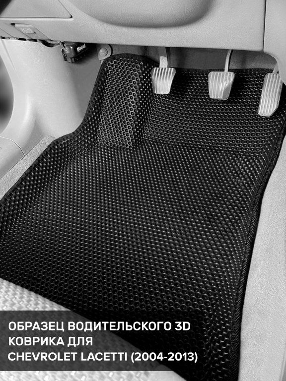 Автомобильные 3д коврики для Chevrolet Lacetti седан, хэтчбек, универсал (2004-2013) в салон авто и багажник сделаны из инновационного полимерного материала EVA, изысканная структура в виде ячеек не дает воде, пыли и снегу разлетаться по салону машины и багажнику. 3д коврики зафиксированы на полу определенными клипсами, соответствующими Chevrolet Lacetti седан, хэтчбек, универсал (2004-2013), и не двигаются в процессе езды.