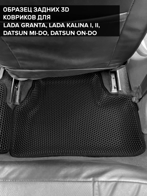 Автомобильные 3д коврики для Datsun on-DO (2014-2020) в салон авто и багажник сделаны из инновационного полимерного материала EVA, изысканная структура в виде ячеек не дает воде, пыли и снегу разлетаться по салону машины и багажнику. 3д коврики зафиксированы на полу определенными клипсами, соответствующими Datsun on-DO (2014-2020), и не двигаются в процессе езды.