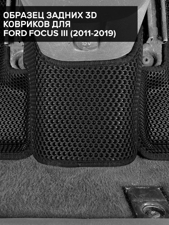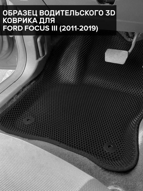 Автомобильные 3д коврики для Ford Focus III рестайлинг седан, хэтчбек, универсал (2014-2019) в салон авто и багажник сделаны из инновационного полимерного материала EVA, изысканная структура в виде ячеек не дает воде, пыли и снегу разлетаться по салону машины и багажнику. 3д коврики зафиксированы на полу определенными клипсами, соответствующими Ford Focus III рестайлинг седан, хэтчбек, универсал (2014-2019), и не двигаются в процессе езды.