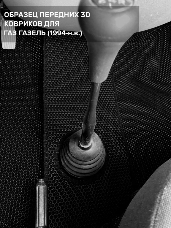 Автомобильные 3д коврики для ГАЗ Газель (1994-н.в.) в салон авто и багажник сделаны из инновационного полимерного материала EVA, изысканная структура в виде ячеек не дает воде, пыли и снегу разлетаться по салону машины и багажнику. 3д коврики зафиксированы на полу определенными клипсами, соответствующими ГАЗ Газель (1994-н.в.), и не двигаются в процессе езды.