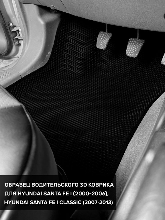 Автомобильные 3д коврики для Hyundai Santa Fe I Classic (2007-2013) в салон авто и багажник сделаны из инновационного полимерного материала EVA, изысканная структура в виде ячеек не дает воде, пыли и снегу разлетаться по салону машины и багажнику. 3д коврики зафиксированы на полу определенными клипсами, соответствующими Hyundai Santa Fe I Classic (2007-2013), и не двигаются в процессе езды.