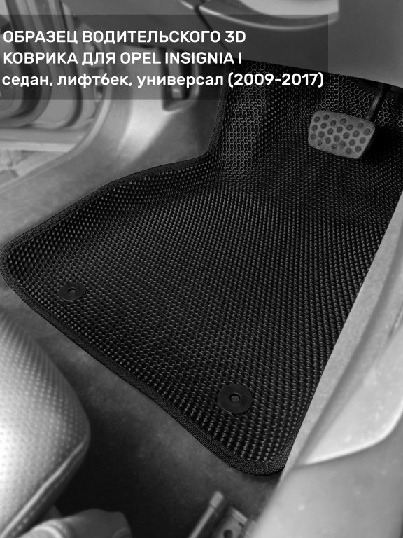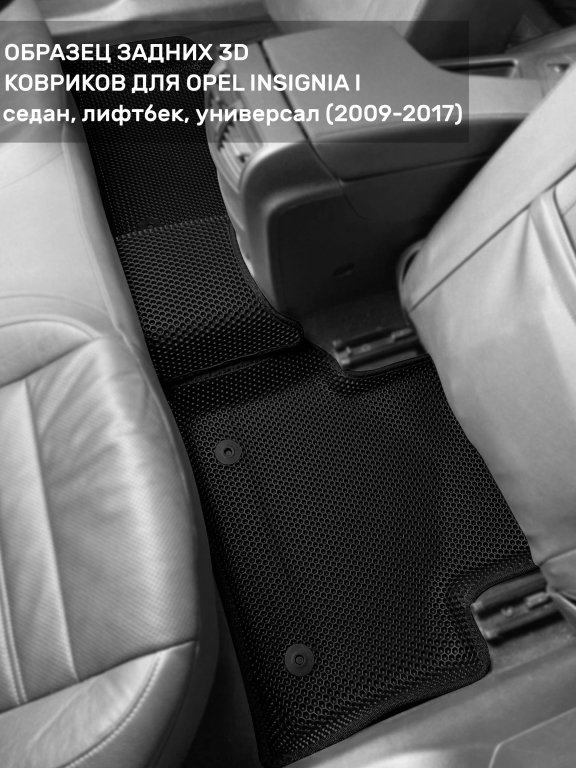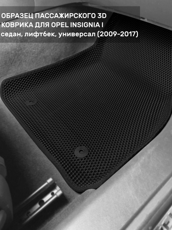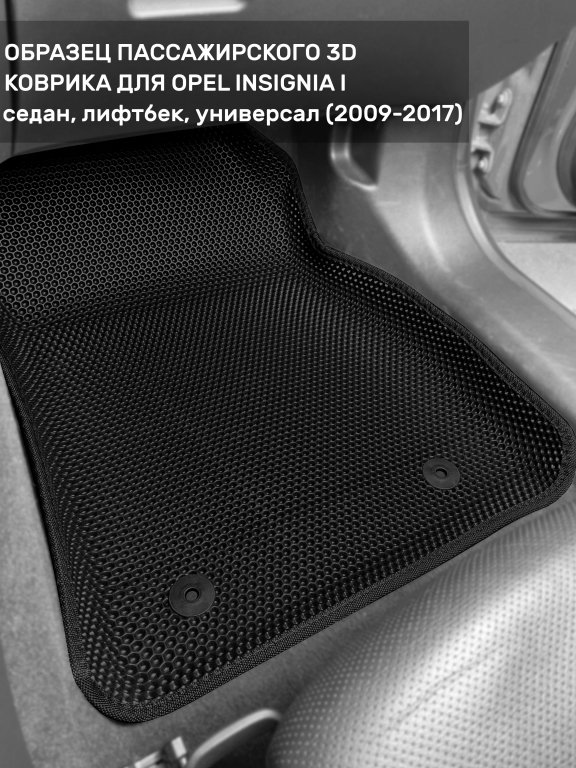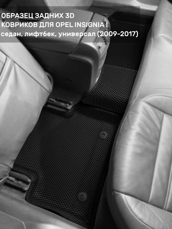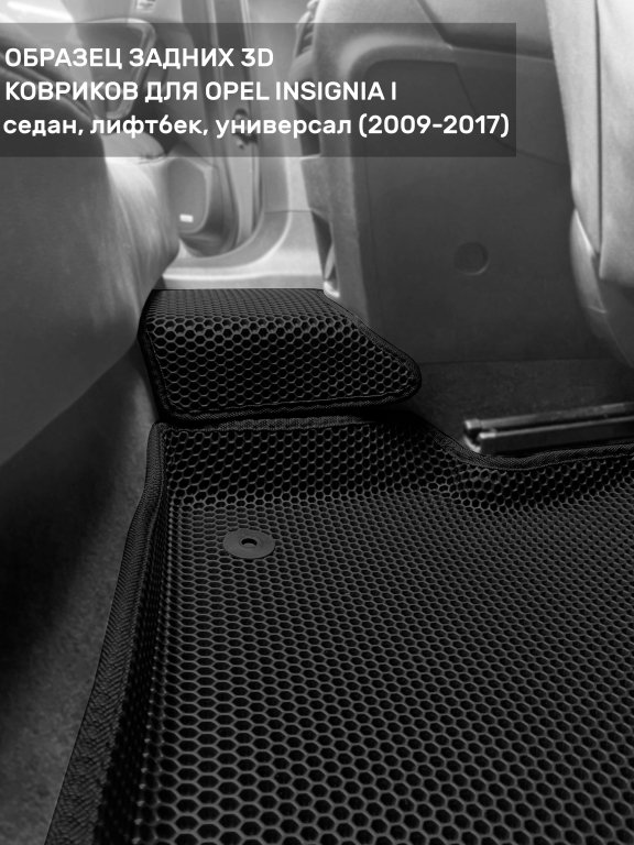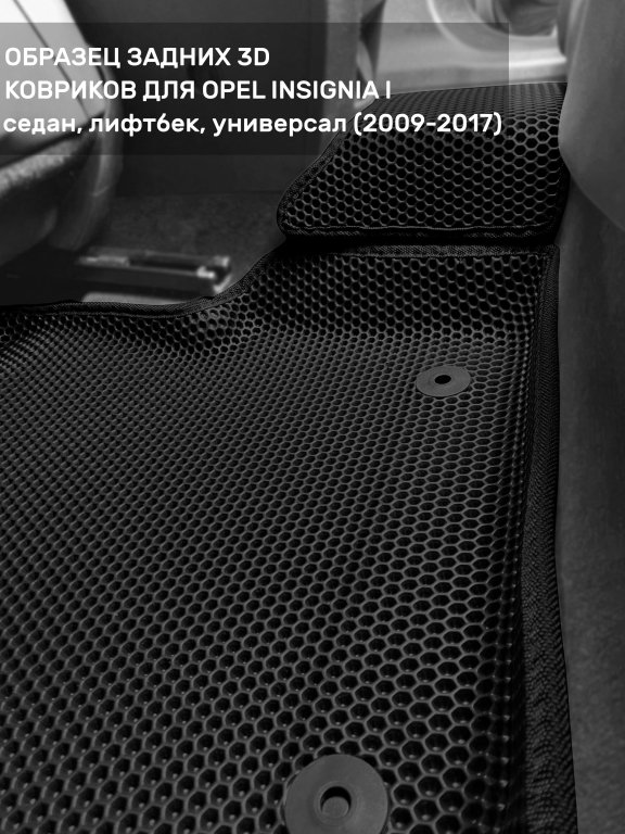 Автомобильные 3д коврики для Opel Insignia I (2008-2017) в салон авто и багажник сделаны из инновационного полимерного материала EVA, изысканная структура в виде ячеек не дает воде, пыли и снегу разлетаться по салону машины и багажнику. 3д коврики зафиксированы на полу определенными клипсами, соответствующими Opel Insignia I (2008-2017), и не двигаются в процессе езды.
