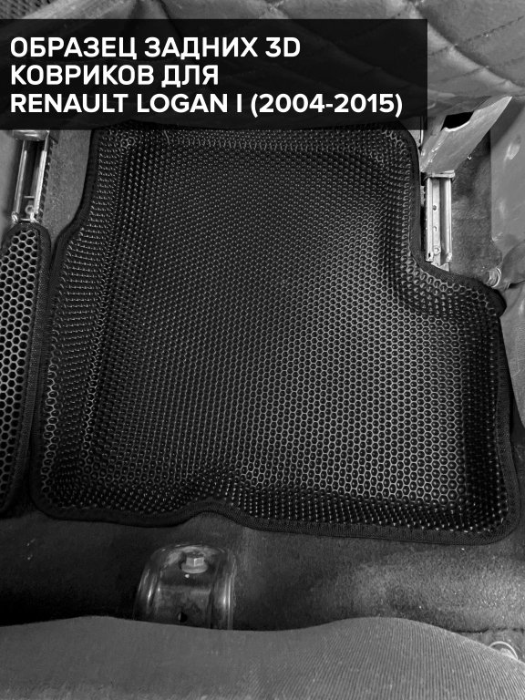 Автомобильные 3д коврики для Renault Logan I (2004-2015) в салон авто и багажник сделаны из инновационного полимерного материала EVA, изысканная структура в виде ячеек не дает воде, пыли и снегу разлетаться по салону машины и багажнику. 3д коврики зафиксированы на полу определенными клипсами, соответствующими Renault Logan I (2004-2015), и не двигаются в процессе езды.