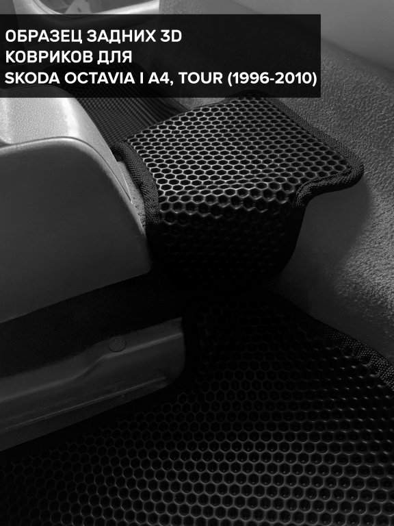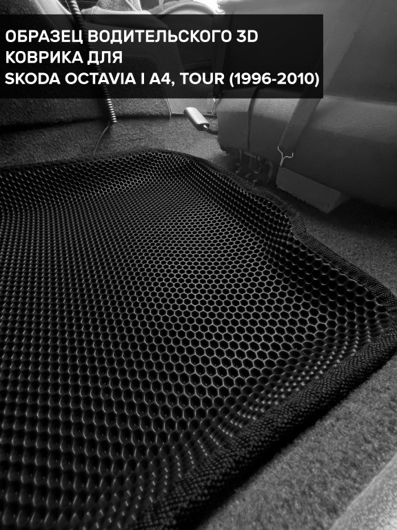Автомобильные 3д коврики для Skoda Octavia I A4 (1996-2010) в салон авто и багажник сделаны из инновационного полимерного материала EVA, изысканная структура в виде ячеек не дает воде, пыли и снегу разлетаться по салону машины и багажнику. 3д коврики зафиксированы на полу определенными клипсами, соответствующими Skoda Octavia I A4 (1996-2010), и не двигаются в процессе езды.