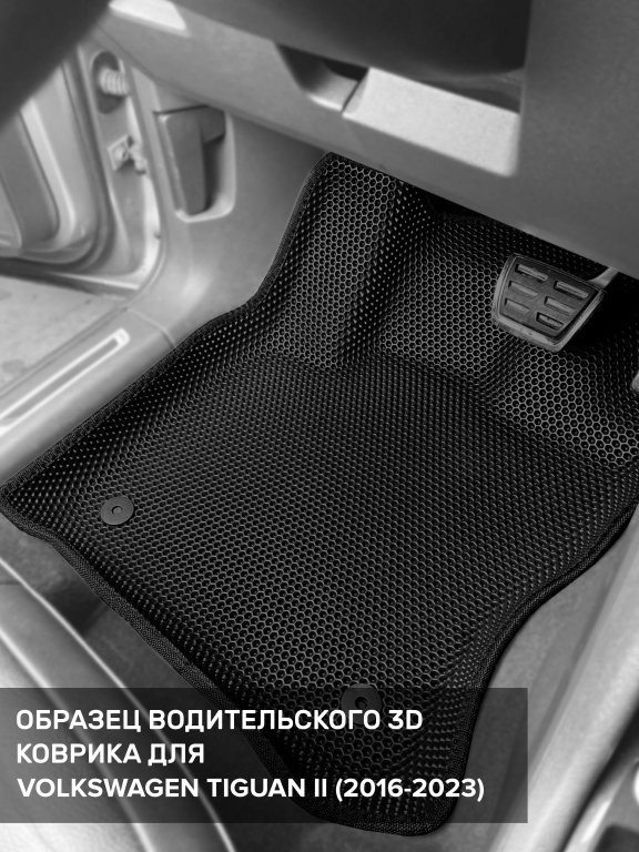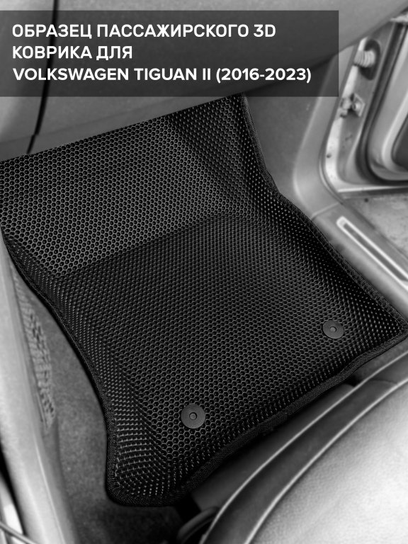 Автомобильные 3д коврики для Volkswagen Tiguan II (2016-н.в.) в салон авто и багажник сделаны из инновационного полимерного материала EVA, изысканная структура в виде ячеек не дает воде, пыли и снегу разлетаться по салону машины и багажнику. 3д коврики зафиксированы на полу определенными клипсами, соответствующими Volkswagen Tiguan II (2016-н.в.), и не двигаются в процессе езды.